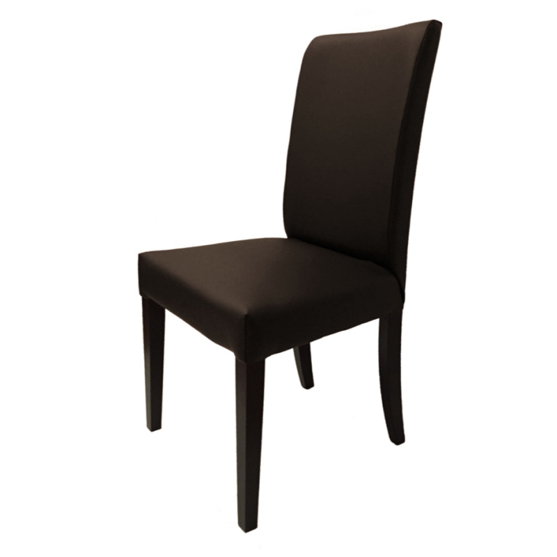 Chaise de restaurant de fabrication chassis Europeen et recouverte dans nos ateliers en France. Cette chaise est disponible en standard dans un choix de couleurs simili cuir à l'aspect granité .